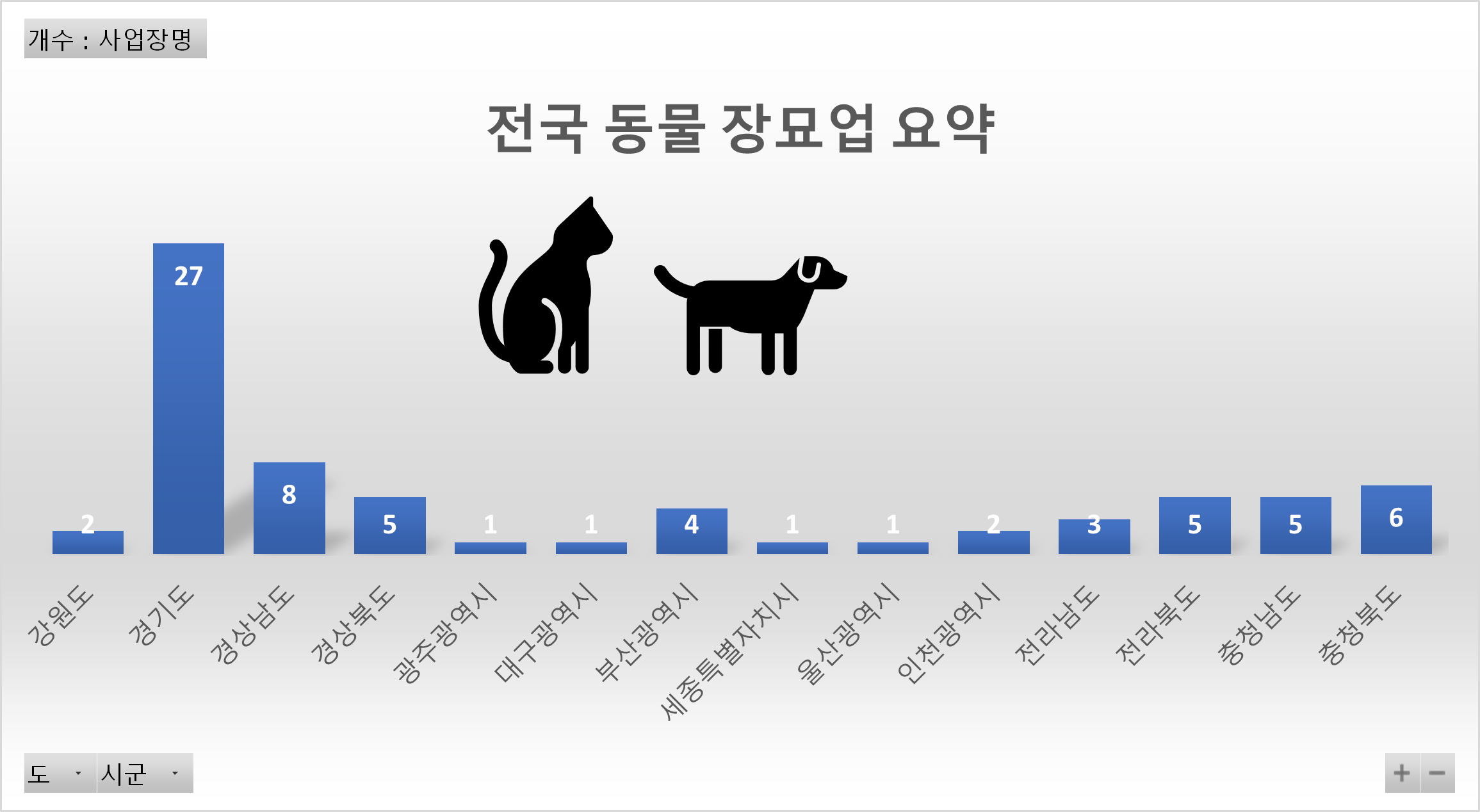 동물 전용의 장례식장이나 납골시설 및 동물화장시설 또는 동물건조장시설을 설치하여 운영하는 업소정보 데이터로 인허가일자, 영업상태, 사업장명, 소재지주소 등의 정보 확인이 가능합니다