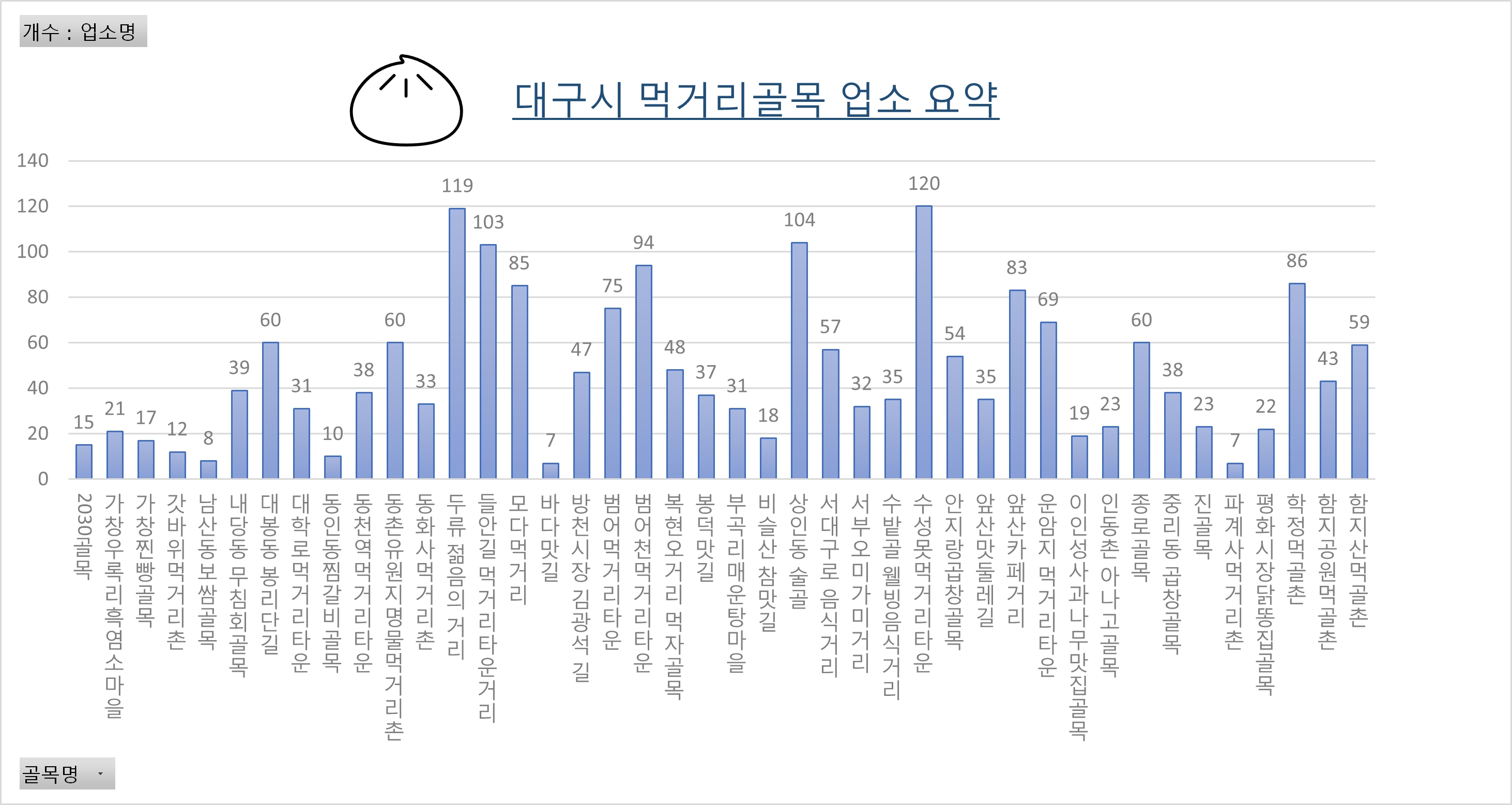 2021년 기업매칭 지원사업(대구 먹거리 골목 통합 데이터셋 구축 사업) 수행에 따른 결과물로, 대구시 먹거리골목에 있는 업소 정보 데이터 입니다.