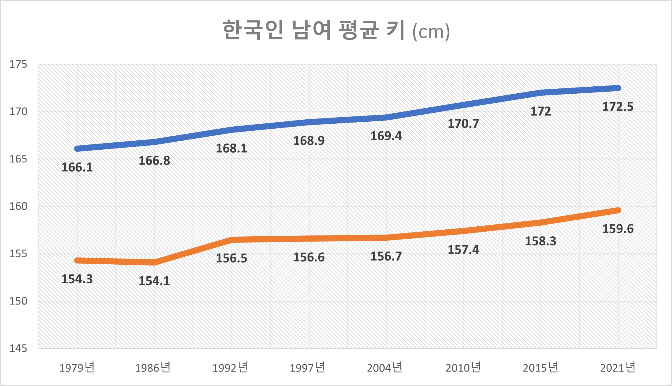 | 40~49세 | 163.9 | 165.8 | 167.1 | 167.9 | 168.6 | 169.2 | 170.3 | 173.2 |